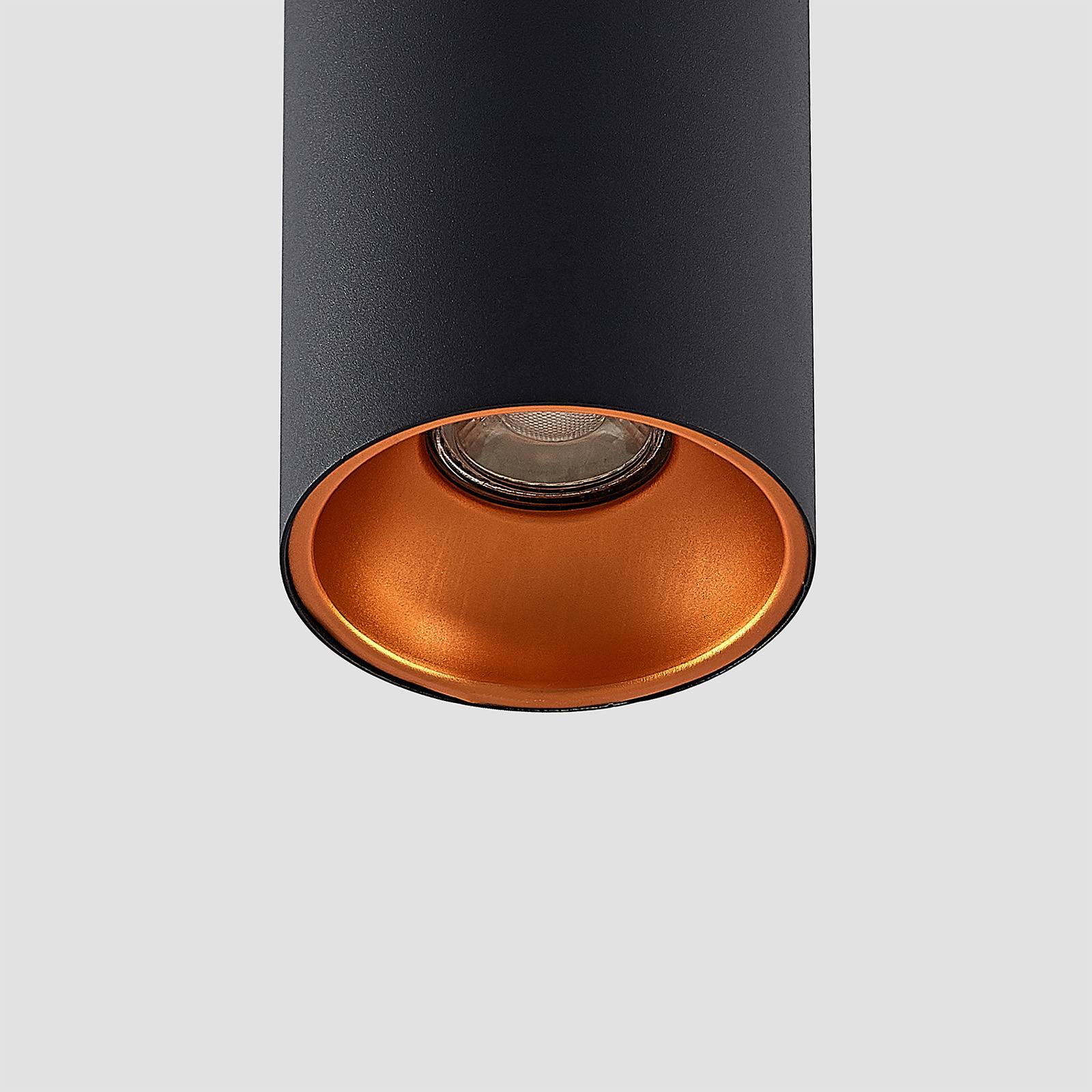 Plafoniera nera Hinka con paralume dorato all'interno La lampada da soffitto Hinka affascina con un suggestivo ma elegante mix di colori, nero e oro. L'alloggiamento allungato a forma di cilindro è stato mantenuto in nero in modo molto classico, con l'interno che sorprende per la finitura dorata. Quando la luce è accesa, si creano effetti di luce calda che si possono sicuramente vedere in qualsiasi soggiorno o area commerciale. Se si sceglie una lampada dimmerabile per la presa GU10, è possibile regolare la luminosità in base alle proprie esigenze e quindi cambiare l'umore nella stanza più volte con l'aiuto di un comune dimmer da parete (dimmer esclusivo).