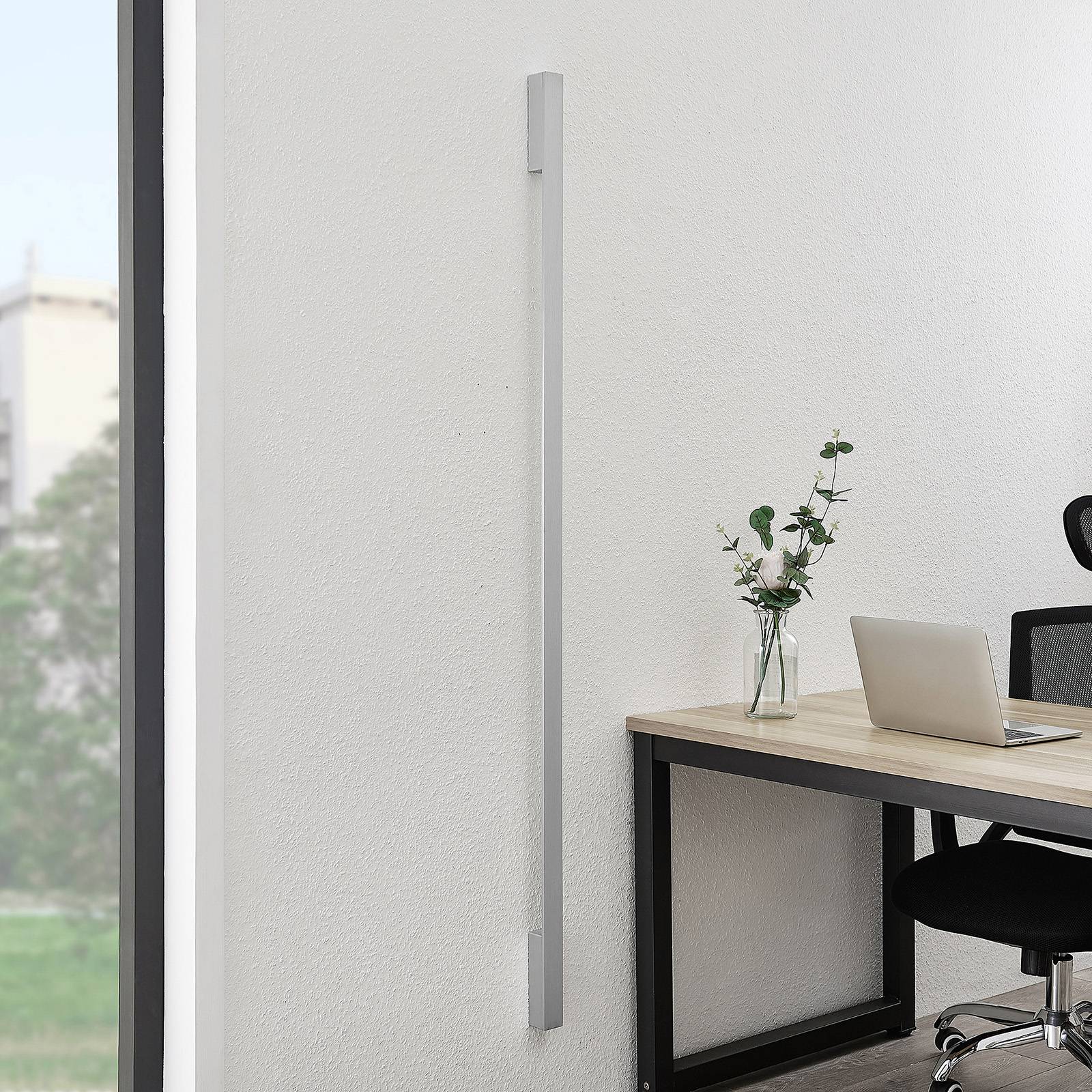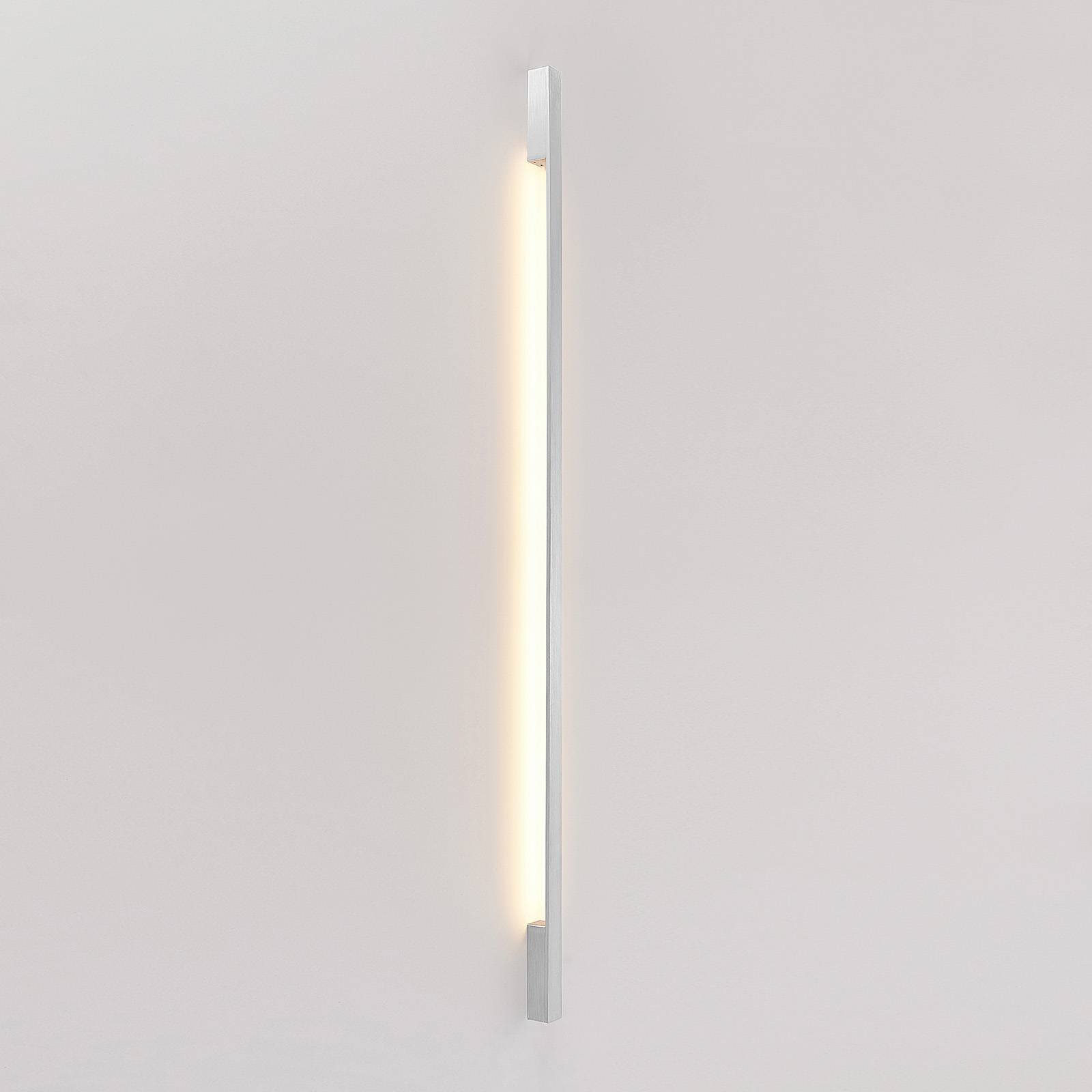 Lampada da parete Slim LED Ivano in design casual La lampada da parete a LED Ivano colpisce per il suo design semplice ma elegante. Il corpo della lampada è costituito da un sottile puntone che viene fissato verticalmente a due staffe a parete. La colorazione pacata dell'alluminio spazzolato e le dimensioni sottili rendono la lampada perfetta per illuminare un corridoio. I suoi LED fissi si trovano sul retro del montante in alluminio e proiettano la loro luce verso il muro, facendola risaltare dal muro. L'apparecchio da parete a LED Ivano è perfetto per l'illuminazione d'accento e il suo aspetto discreto lo rende un perfetto abbinamento per l'interior design. La colorazione relativamente neutra è piacevole alla vista e non distrae dal resto dei mobili e delle decorazioni.