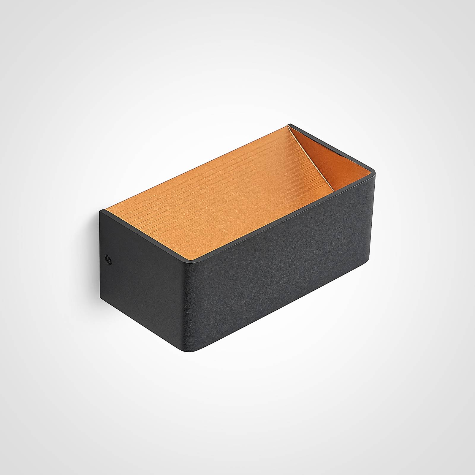 Lampada da parete quadrata a LED Karam con finitura nero-oro Karam è adatta anche per i corridoi e per il soggiorno o la camera da letto, perché la lampada da parete a LED fornisce sempre una bella luce accogliente. Il corpo della lampada in alluminio ha un design lineare e una superficie nera all'esterno, mentre l'interno ha una bella tonalità dorata che riflette la luce in modo caldo e accogliente. La tecnologia LED garantisce inoltre un basso consumo energetico, rendendo Karam una sorgente luminosa efficiente.