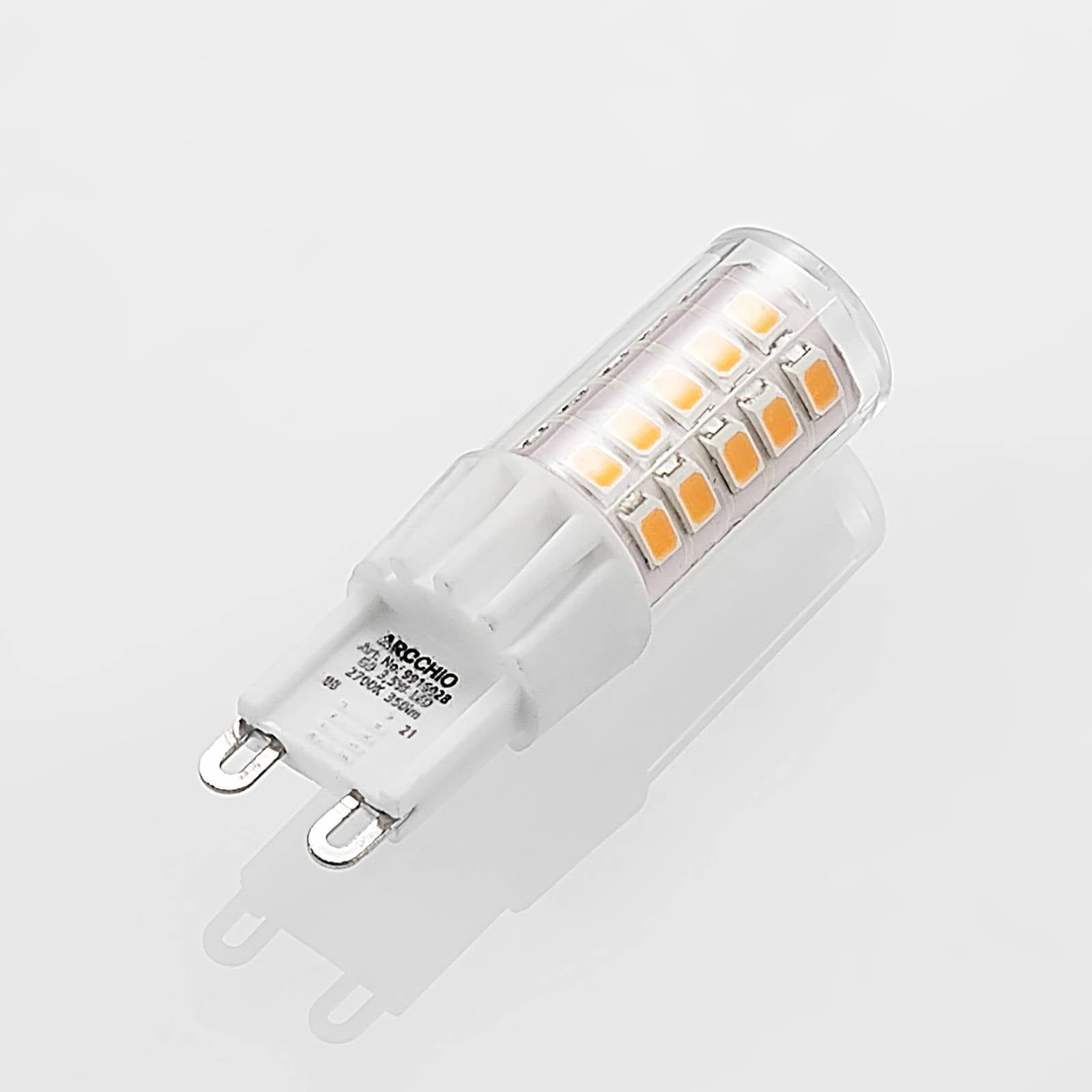 Lampada LED G9 3,5W con base a spillo con funzione di dimmer e luce bianca calda in set da 10Questa lampada LED G9 può essere regolata in luminosità tramite un dimmer a taglio di fase o a taglio di fase. La sua forma a pin può essere utilizzata in molti apparecchi diversi. La tecnologia LED è economica nei consumi e fornisce una buona illuminazione - Colore della luce bianco caldo 2.700 K - Dimmerabile - Fornita in un pratico set di 10 pezzi