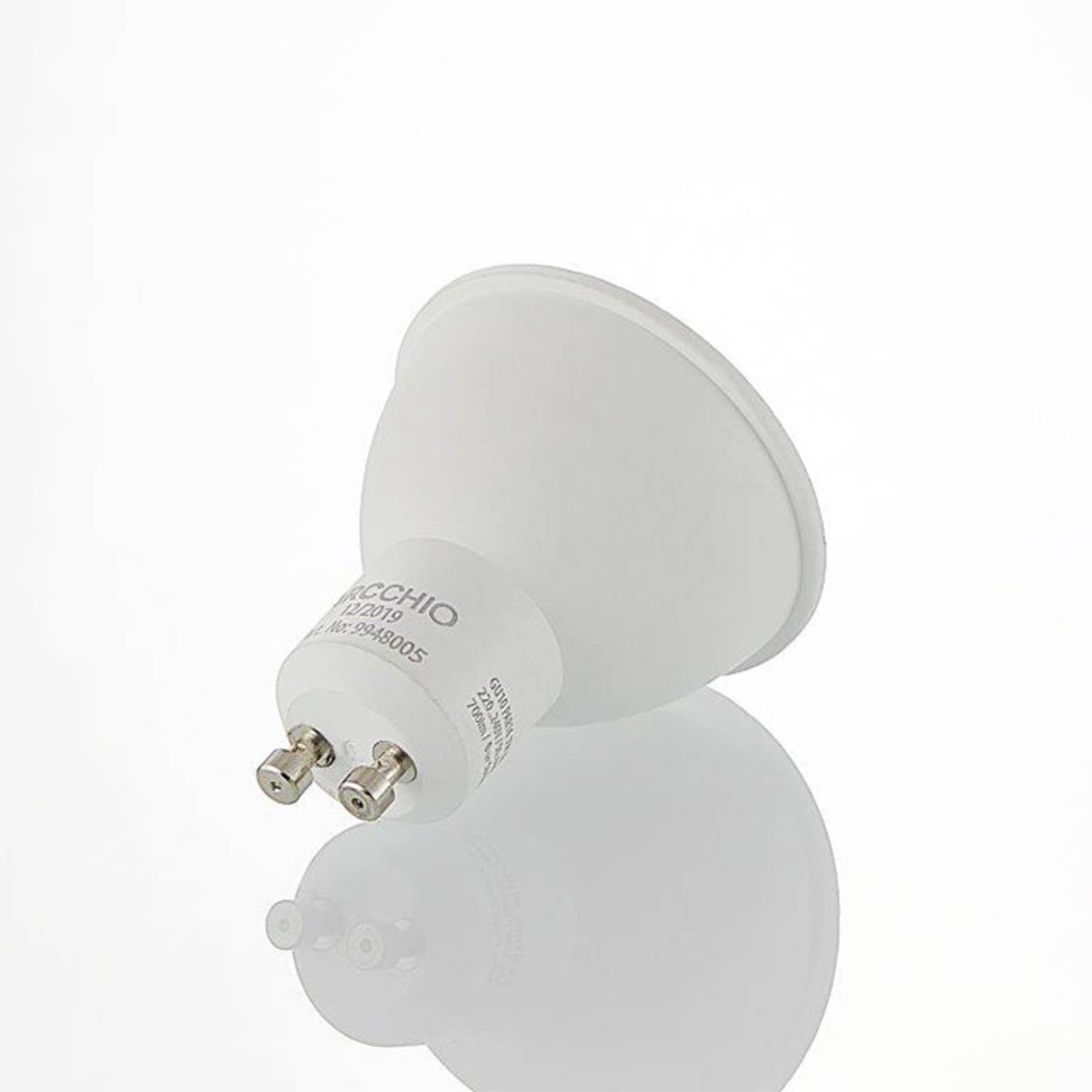 Lampadina LED a riflettore GU10 7W 3.000K 120° Questa lampadina LED a riflettore GU10 garantisce lunga durata e grande efficienza energetica. Diffonde la luce a un angolo di 120°. Pertanto si presta a sostituire lampadine alogene usate in corpi illuminanti per una luce generale estensiva, garantendo lunga durata e grande efficienza energetica. - Non dimmerabile