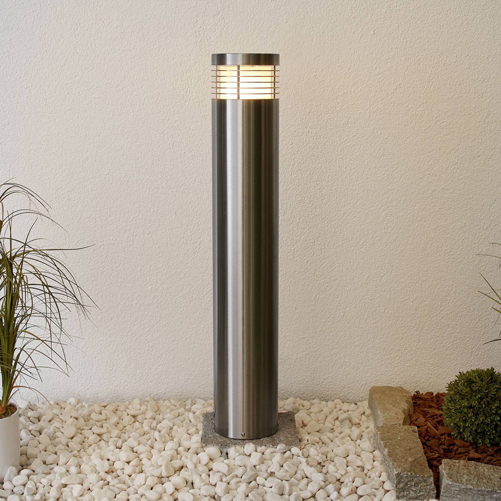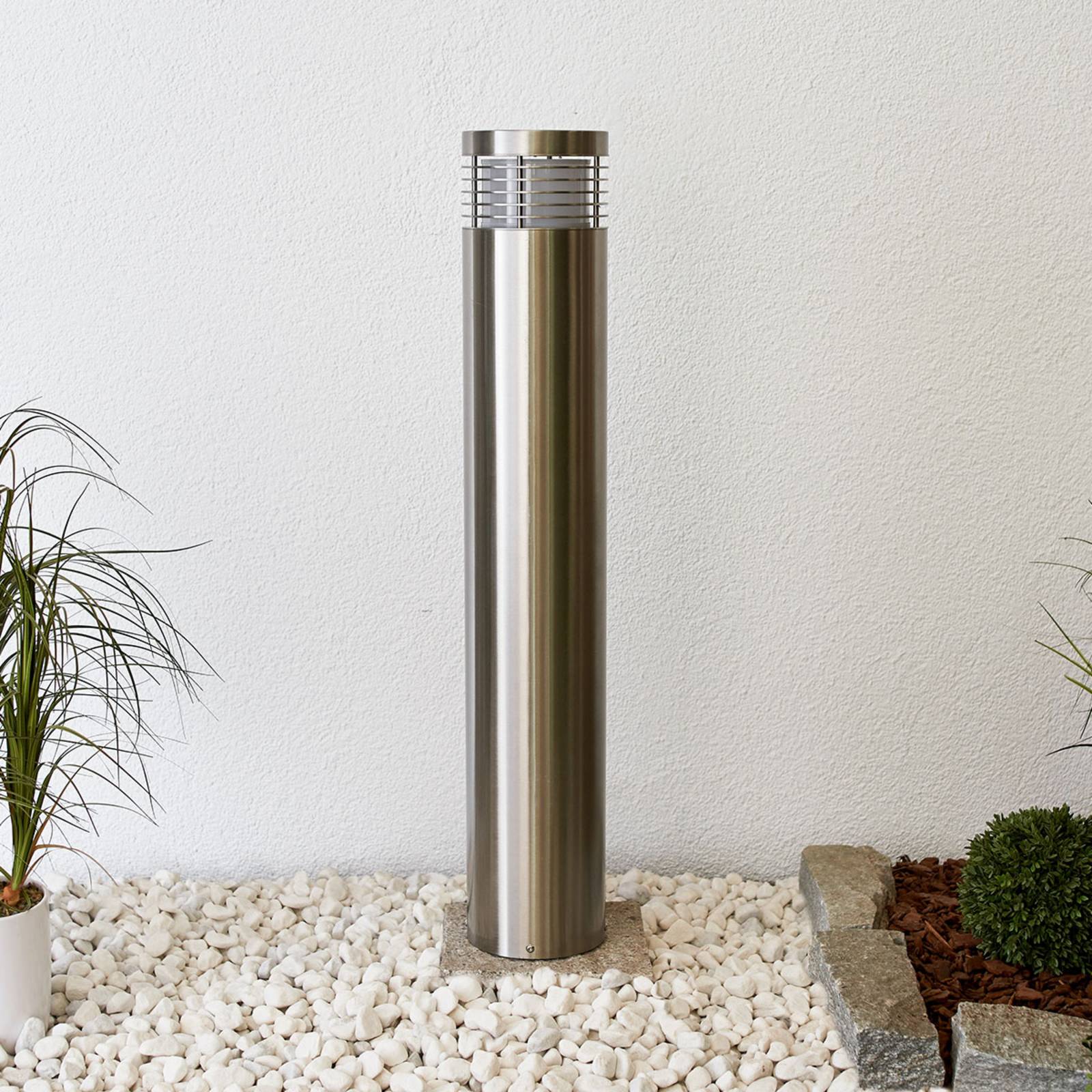 Lampione Tomita: struttura rotonda in acciaio inossidabile per aree esterne Il lampione Tomita è un'aggiunta visiva al design della vostra proprietà e una pratica fonte di luce. È realizzata in acciaio inox V2A e ha un design rotondo. Grazie al materiale di alta qualità, il lampione Tomita si trova a suo agio all'aperto e può resistere senza problemi ai normali cambiamenti climatici. Si estende verticalmente dal terreno, fornendo una luce calda a un'altezza confortevole. In questo modo si ottiene una buona illuminazione ai bordi del sentiero o vicino alla porta d'ingresso. L'illuminazione da esterno, esente da ruggine, contribuisce anche a creare un ambiente elegante in un patio.