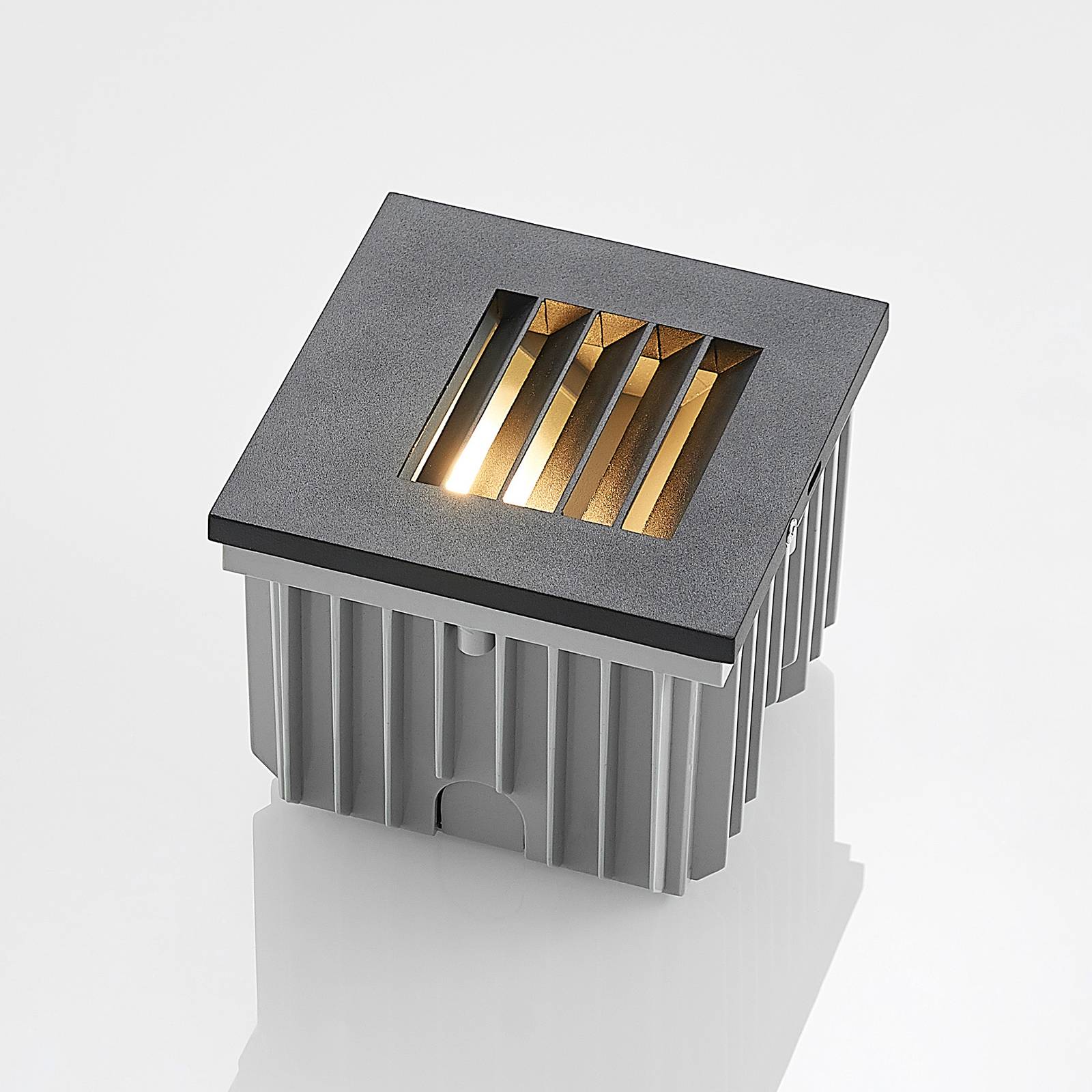 Apparecchio da incasso Makio in alluminio con design angolare a lamelle La lampada da incasso Makio è adatta per essere installata sia all'interno che all'esterno. È realizzato in alluminio e presenta una semplice colorazione nera. Una volta installato l'apparecchio, rimane solo un elemento compatto e quadrato, che si integra bene nelle pareti piane. L'apparecchio da incasso Makio può essere dotato di sorgenti luminose adeguate e la luce prodotta è piacevolmente attenuata dalle sue lamelle. Grazie al grado di protezione IP65, l'apparecchio è adatto anche all'uso esterno, in quanto è chiaramente protetto da polvere e getti d'acqua.