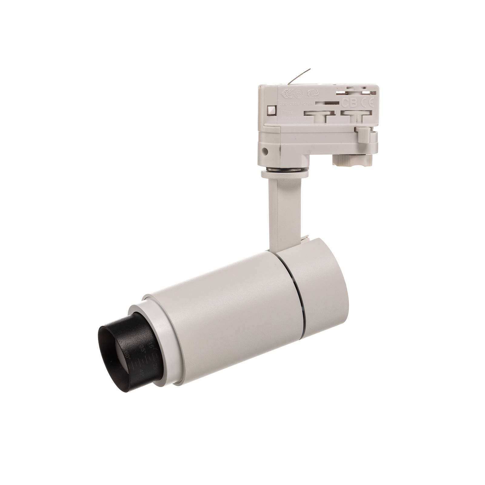 Con emissione luminosa regolabile - Nanna Faretto a binario LED Realizzato in alluminio bianco, il faretto a binario Nanna è dotato di una testa dell'apparecchio regolabile individualmente che può non solo ruotare e orientarsi, ma anche modificare l'angolo di emissione. Da 15° stretti a 60° più ampi, la lente può essere comodamente variata ruotando semplicemente la testa dell'apparecchio. Sul faretto sono presenti piccoli segni per la corretta regolazione dell'angolo. Nanna è adatto come spot a binario LED per sistemi trifase e può essere utilizzato, ad esempio, per l'illuminazione di negozi nel settore commerciale. A seconda che si tratti di un oggetto specifico o di un'intera area da illuminare, il faretto a binario Nanna può proiettare la sua luce con l'angolazione giusta. Con un valore CRI superiore a 90, è possibile ottenere un'ottima resa cromatica, in modo da riprodurre le tonalità di colore il più possibile inalterate con il far