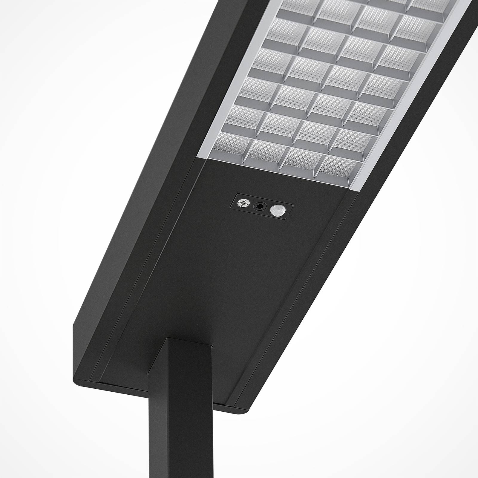 Lampada da terra per ufficio Susi LED in nero con dimmer, base a U, sensore di luce diurna e rilevatore di movimento per un lavoro ottimale alla postazione di lavoro del computerLa luce emessa dalla lampada da terra per ufficio Susi è in gran parte indiretta e molto piacevole con un effetto antiabbagliante, in modo da potersi concentrare a lungo sul PC, aiutati anche dalla luce priva di sfarfallio che l'apparecchio produce. La luce è di colore bianco universale, ideale per lavorare al computer. La base di questa lampada da terra a LED è a forma di U, in modo da poterla collocare facilmente intorno alla gamba di un tavolo. Grazie a un sensore di luce diurna, la luminosità si regola automaticamente in base alla luce ambientale e, se necessario, può essere controllata manualmente tramite un dimmer sul touchpad. Il sensore di movimento assicura inoltre che l'apparecchio si spenga se la postazione di lavoro non viene utilizzata per un periodo di tempo prolungato (più di 30 minuti).Dati tecnici:- luce priva di sfarfallio- base a U- incl. sensore di movimento (portata 3,5 m, angolo di rilevamento 85°)- con sensore di luce diurna- con dimmer- percentuale particolarmente elevata di luce indiretta- per postazioni di lavoro VDU (UGR > 11)