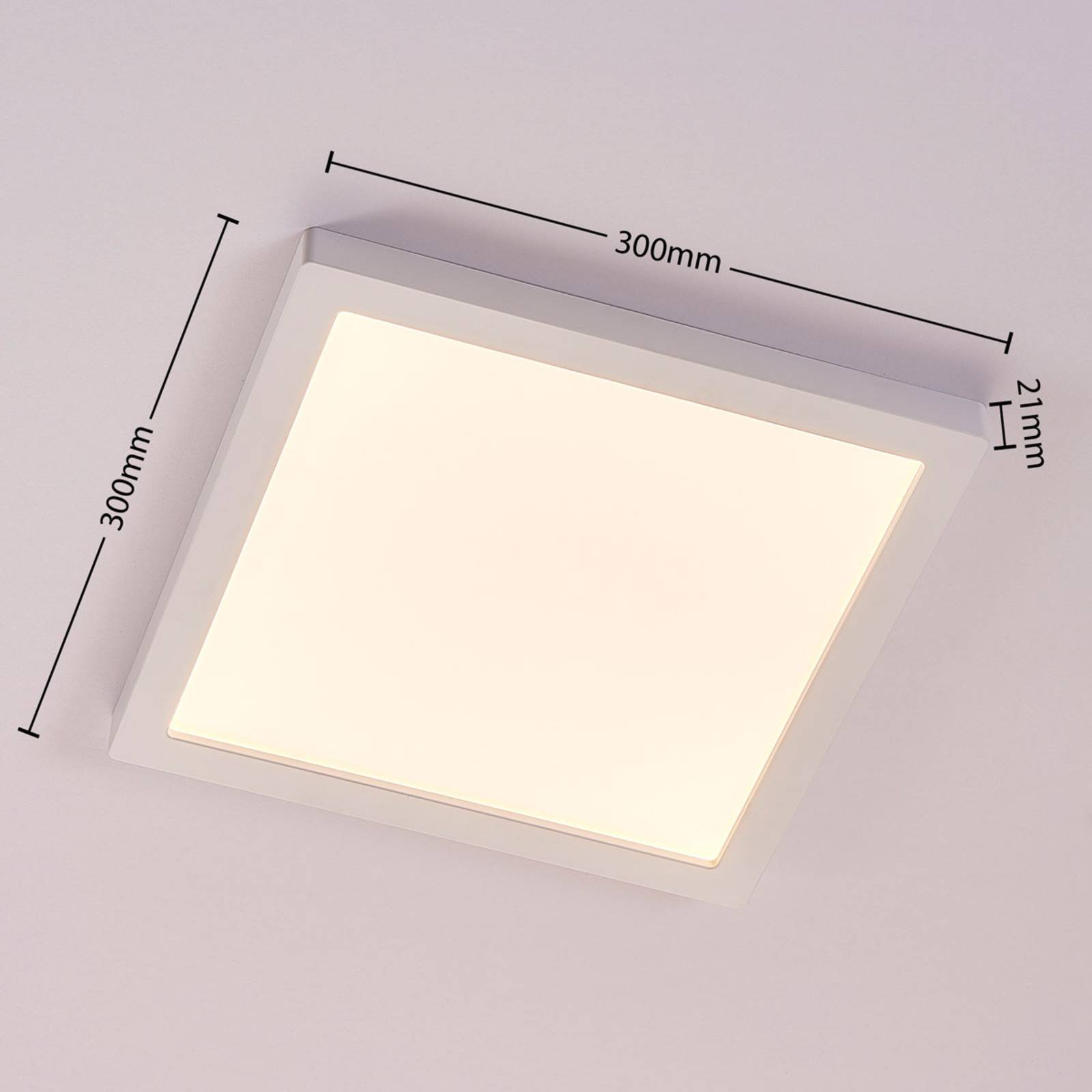 Plafoniera LED dimmerabile Solvie con forma di base quadrata e cornice bianca Solvie è adatta a un'ampia gamma di ambienti perché sia la forma che il colore appaiono molto discreti e possono essere utilizzati quasi universalmente. La plafoniera LED è angolare e presenta una cornice all'esterno e una superficie di diffusione all'interno. Entrambi i componenti sono di colore bianco e la luce viene distribuita in modo molto uniforme, in modo da risultare il più gradevole possibile. Dal punto di vista funzionale, Solvie guadagna punti perché dispone di una tecnologia di dimmerazione integrata che può essere controllata in tre fasi utilizzando il normale interruttore a parete. Ciò significa che la luminosità può essere regolata a seconda delle esigenze con Nur pochi semplici passaggi e senza dover montare alcun accessorio.