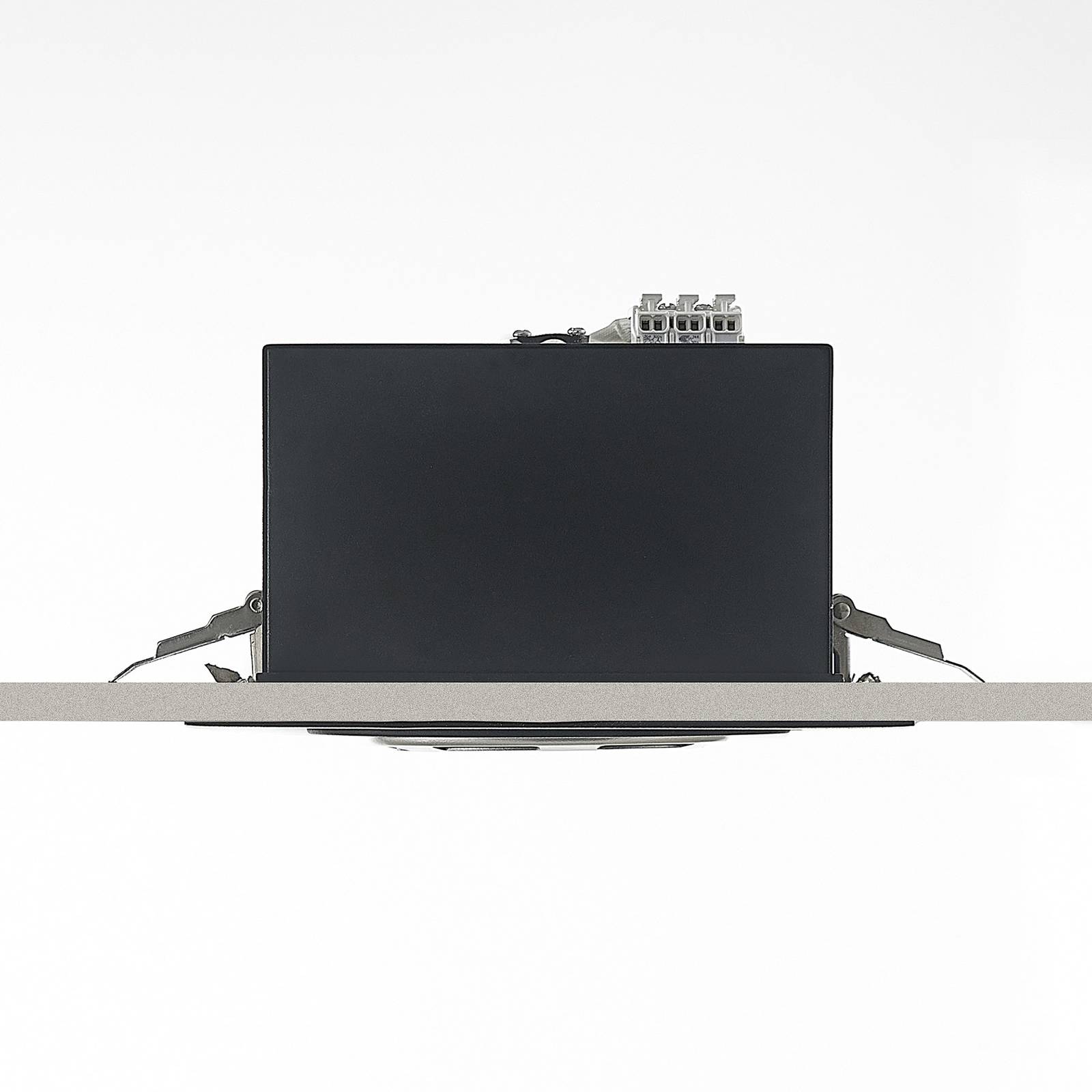 Luce da incasso a 1 fuoco Yasna dal design moderno in acciaio nero-sabbia La luce da incasso Yasna colpisce per il suo design discreto in acciaio di colore nero-sabbia. Il corpo dell'apparecchio è angolare e al centro può essere inserita una sorgente luminosa GU10-ES111, che si distingue per l'aspetto particolare e l'ampio diametro. Inoltre, l'apparecchio è dotato di un terminale a innesto rapido che ne consente il montaggio senza viti, garantito da un meccanismo a molla resistente, sicuro e privo di attrezzi. L'apparecchio da incasso Yasna è facile da integrare in vari stili di interni grazie al suo design poco appariscente e alla tranquilla combinazione di colori nero-sabbia. Può essere utilizzato per illuminare spazi abitativi ad uso privato o come illuminazione di negozi.