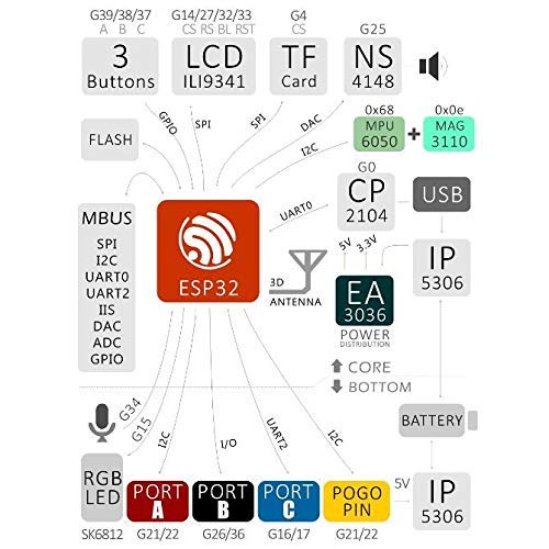 ARCELI M5Stack Nuova PSRAM 2.0! Fire IoT Kit Dual Core Scheda di Sviluppo ESP32 16M-Flash + 4M-PSRAM Mic/BLE MPU6050 + MAG3110 di Micropython (Fire)
