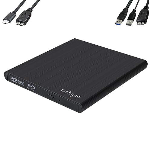 Archgon Style BD Esterno Masterizzatore/Lettore Blu-ray BDXL Burner per PC USB 3.0 USB-C, M-Disc, Cassetto per il caricamento del disco, Alluminio Nero