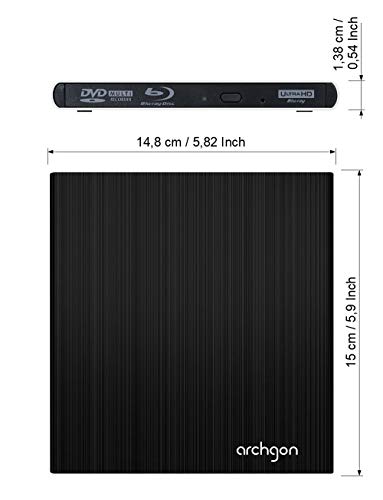 Archgon Style UHD Esterno Lettore 4K-Ultra HD Blue BD Player, Masterizzatore Blu-ray BDXL Burner per PC USB 3.0 USB-C, M-Disc, lettori BluRay 4K USB UltraHD nativo, Box di protezione, Alu Nero