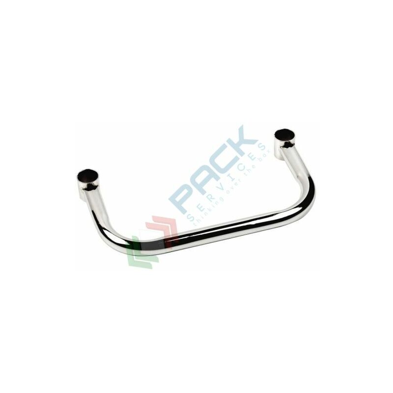 Maniglia in acciaio cromato orizzontale, Mis. 60,4 cm, completa di guancette per il fissaggio ai tubolari. Può essere regolata all'altezza desiderata in corrispondenza delle apposite scanalature presenti sui tubolari montanti (ogni 2,5 cm). Altezza anello: cm 4.
