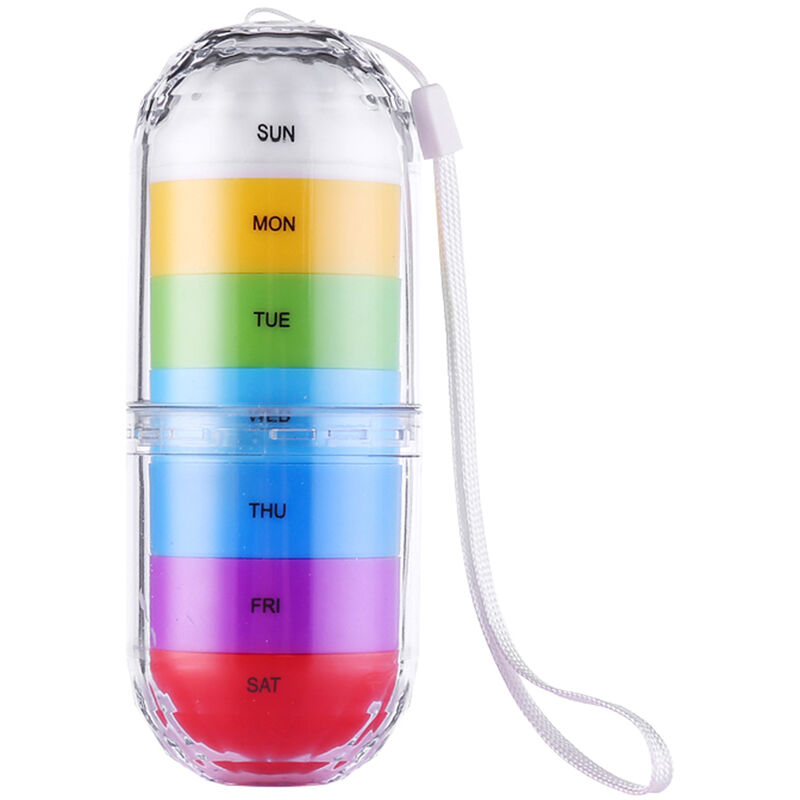 Caratteristiche: Aiuta le persone che hanno problemi di memoria in modo che non perdano il trattamento. Materie prime non tossiche ecocompatibili per alimenti in PP + PC, resistenti alla caduta, flessibili. Sigillato, resistente alle alte temperature, impermeabile e leggero. Forte capacità anti-corrosione, nessuna reazione con acidi e alcali. Adatto a tutte le dimensioni di pillole, compresse. E molto conveniente per i viaggi. specifiche tecniche: Materiale: PP per uso alimentare + PC Colore: colorato Dimensione dell'articolo: 12,5 * 5 * 5 cm / 4,92 * 4,92 * 1,97 pollici Peso dell'articolo: 215g / 7.58oz Formato del pacchetto: 13 * 6 * 6 cm / 5,12 * 2,36 * 2,36 pollici Peso del pacchetto: 110g / 3.88oz Lista dei pacchetti: 1 * scatola della pillola