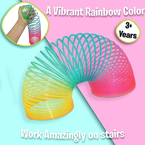 Arcobaleno Magic Spring Glittered, 6,5 cm Colorful Rainbow Neon Plastic Spring Toy Stuffers per ragazzi ragazze giocattoli regalo, Goodie Bag Filler per bambini