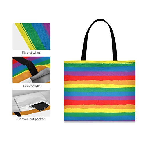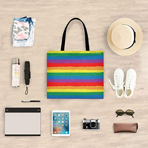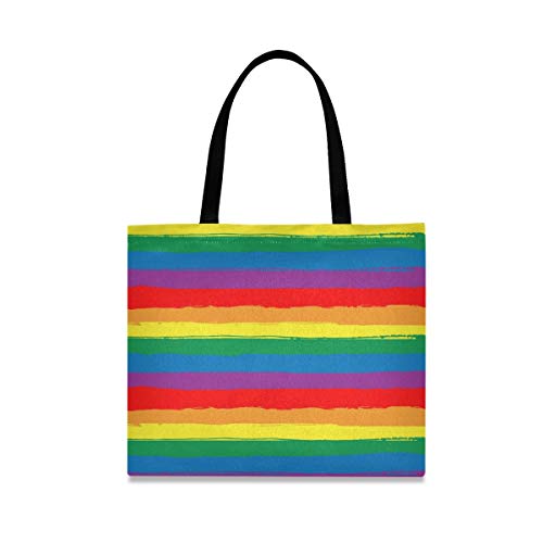 Tela Tote Bag Arcobaleno Strisce Colorate Arte Shopping Panno Borsa Riutilizzabile Della Drogheria Borse A Tracolla