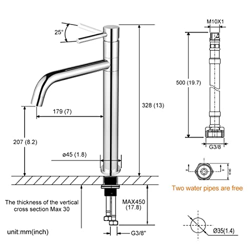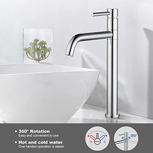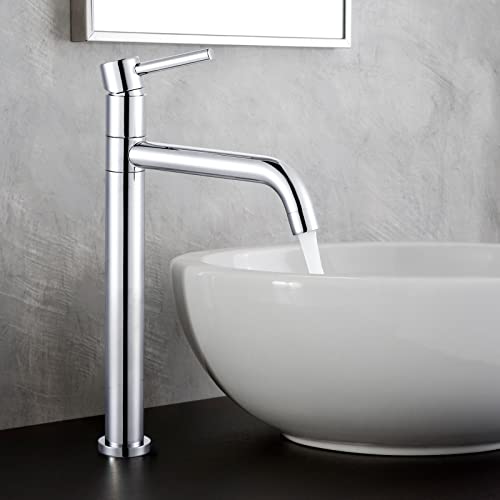 Scarico alto - il rubinetto è alto 32,8 cm e il design sottile con beccuccio alto 20 cm è adatto per lavabi da appoggio, per evitare schizzi d'acqua durante il lavaggio e per mantenere la bellezza del bagno.