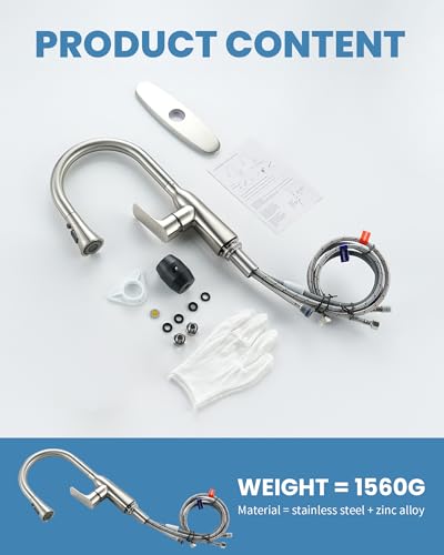 Design ergonomico: il rubinetto da cucina ha un aspetto semplice ed elegante ed è adatto per cucine moderne. Il rubinetto estraibile da cucina e il beccuccio da 160 cm sono molto pratici. La superficie in nichel spazzolato è facile da pulire e non lascia impronte digitali.