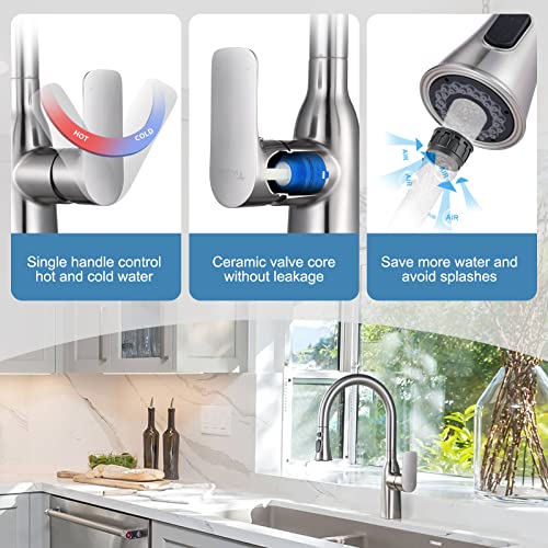 Acciaio inox SUS304 di alta qualità: il nostro rubinetto per lavello da cucina è realizzato in acciaio inossidabile SUS304, resistente alla ruggine e senza piombo. La cartuccia in ceramica è impermeabile e senza perdite d'acqua. Il rubinetto da cucina con aeratore consente di risparmiare il 50% di acqua.