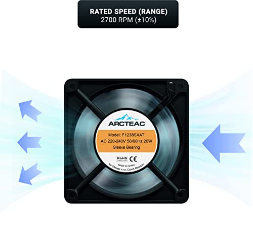 Arcteac Ventola di raffreddamento della ventola, 120x120x38 mm, 230 V, ventole assiali, raffreddamento del dispositivo, ventilatore 2700 giri/min, classe energetica A+, modello F1238SXAT