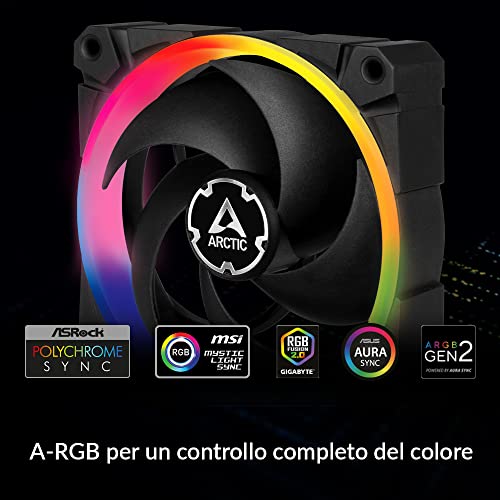 ARCTIC BioniX P120 A-RGB - 120 mm Ventola PC da Gioco a Pressione Statica con A-RGB, PWM, Dissipatore, Cuscinetto Dinamico Fluido, 400-2300 RPM - Nero