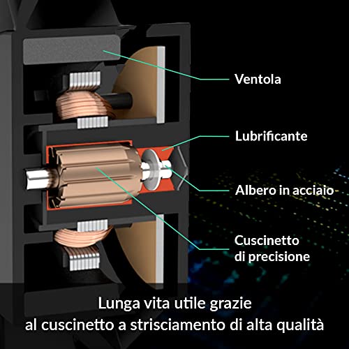 FACILMENTE INCATENABILE TRAMITE BLOCCO CONNETTORI: La ventola ha ingresso e uscita per far passare luce e i segnali della ventola;