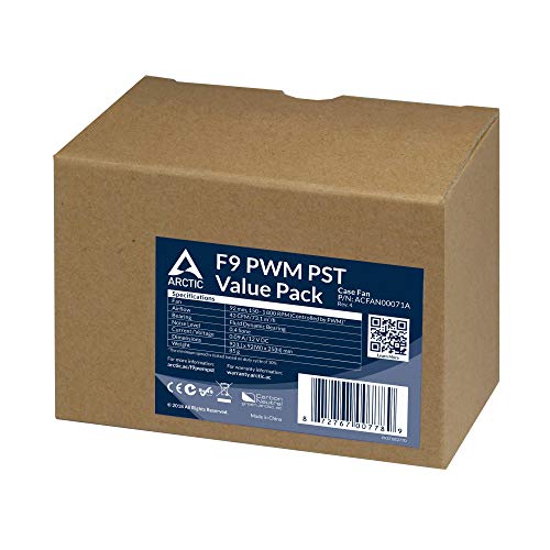 ARCTIC F9 PWM PST (Pacco da 5) - 92 mm PWM PST Ventola, Basso Rumore, PWM Sharing Technology PST, 150-1800 RPM, 0,4 Sone - Nero/Bianco
