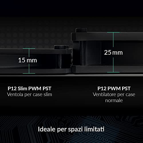 ALTEZZA DI MONTAGGIO-BASSA: Il P12 Slim PWM PST ha un'altezza di montaggio a solo 15 mm ed è quindi adatto a case con piccoli fattori di forma & e non è adatto per installazioni di ventilatori da 25 mm