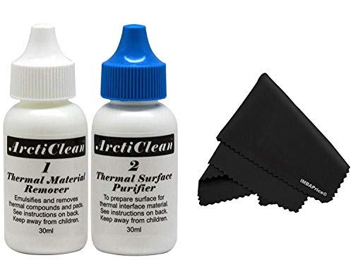 Arctic Silver - Set di Arcticlean da 60 ml (1 flacone di ARCTICLEAN 1 da 30 ml + 1 flacone di ARCTICLEAN 2 da 30 ml) e panno di pulizia in microfibra (dimensioni 17,8 x 15,2 cm)