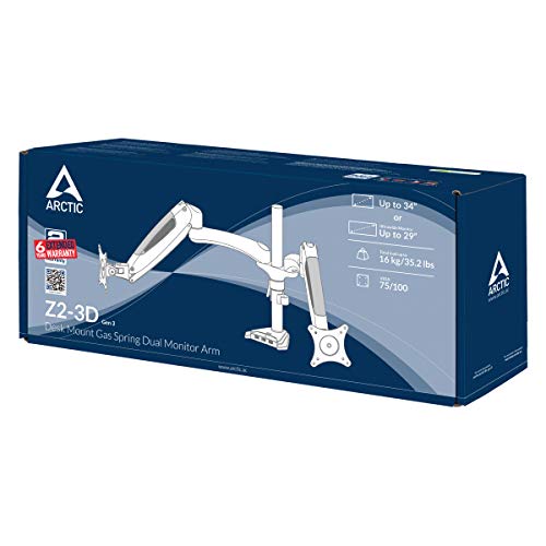 ARCTIC Z2-3D (Gen 3) - Braccio Doppio Monitor Porta Monitor, Inclinabile e Ruotabile per Schermi/Televisori 34"/34" Ultrawide, Fino a 8 kg, Superspeed USB Hub a 4 Porte - Nero
