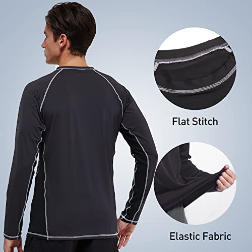 Arcweg Rashguard Mare Surf Uomo Maniche Lunghe Protezione Solare UV UPF 50+ Asciugatura Veloce Maglia Anti UV Pescs Stile Sciolto Elastica Maglietta Piscina Grigio e Nero M(EU)