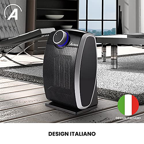 Ardes AR4P09 Termoventilatore Ceramico PTC Oscillante Compatto, 3 Potenze con Termostato LED e Maniglia, 1800 W, Nero