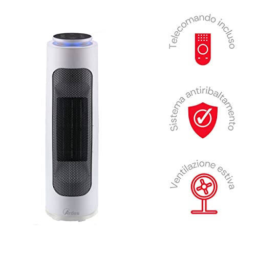 ARDES - AR4P19 PIN Termoventilatore Ceramico a Torre Oscillante 2000W - Termoventilatore Bagno Camera Salotto Timer 12h - Termoventilatore Silenzioso Oscillante Ceramico - Telecomando e Display Touch