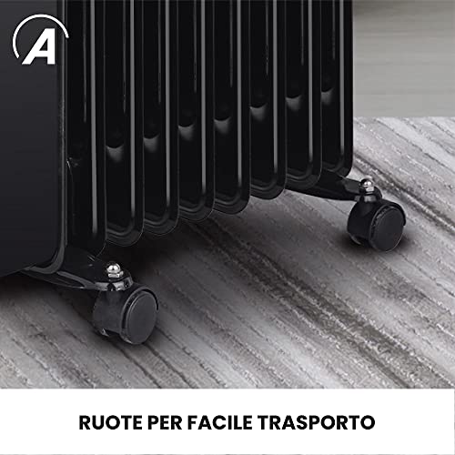 Ardes AR4R09BTTE OILO 9TT Radiatore a Olio Elettrico 9 Elementi Riscaldanti, Timer, 3 Potenze, Ventilazione Turbo, con Ruote, 2500 W Nero e Silver