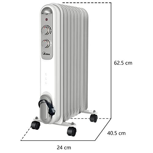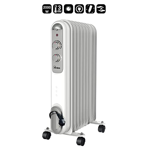 ARDES - AR4R09S CURVY Radiatore a Olio 9 Elementi Riscaldanti - Radiatore Termosifone 3 Potenze 2000W - Radiatore Ad Olio Con Spia Funzionamento e Termostato di Regolazione Della Temperatura