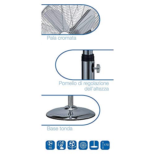 Ardes AR5C45PH CHROME 45P Ventilatore a Piantana Cromata Base Tonda Pala 45 cm 3 livelli di Velocità Altezza Regolabile 115-170 cm