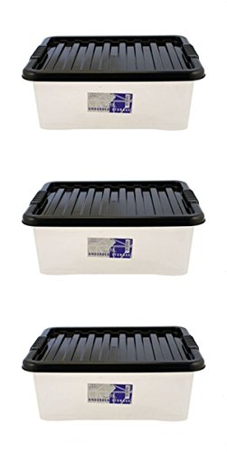 Ardisle multi pack di 3 sotto il letto, capienza 26 l New (Made in UK) Base trasparente coperchio nero