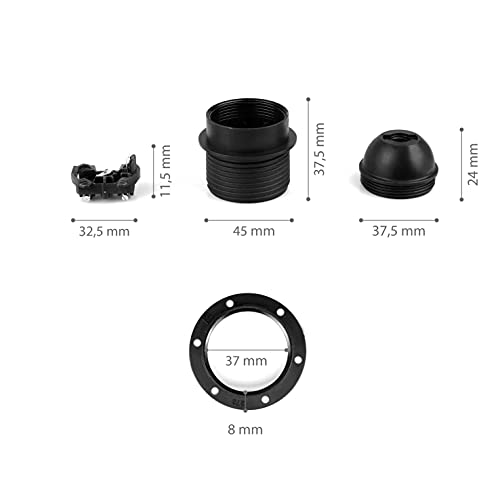 Arditi Portalampade termoplastico in tre pezzi con attacco E27 e camicia parzialmente filettata, Nero