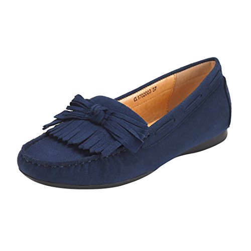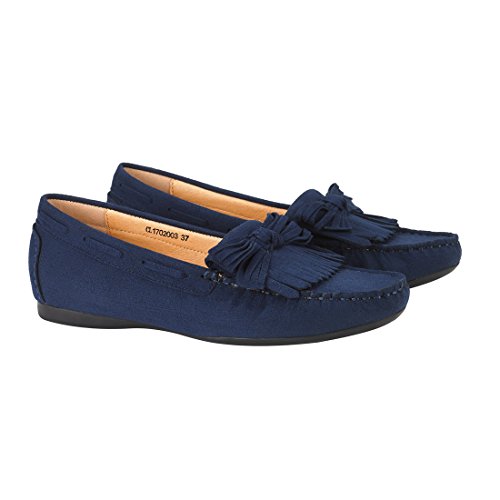 JENN ARDOR Mocassini Penny in Pelle Scamosciata Nappa per Donna: Mocassini con moschettone, Stivali da Passeggio per Barche-Blu Scuro