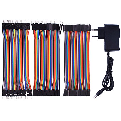Per Arduino starter kit,Kuman Power Supply Wall Adapter 9V AC to DC 1A + 120pcs Multicolored Jumper Wires Ribbon Cable 40pin maschio-femmina 40pin maschio-maschio 40pin femmina-femmina K72