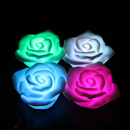 Ardux - Candele galleggianti a LED, a forma di rosa, a forma di fiore, impermeabili, cambiano colore, luce notturna, candele senza fiamma, con alimentazione a batteria (confezione da 4)