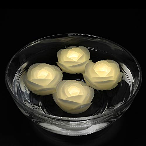Ardux - Candele galleggianti a LED, a forma di rosa, impermeabili, galleggianti, senza fiamma, con alimentazione a batteria, per decorazione di feste di matrimonio, plastica, bianco, 4Pcs/lot