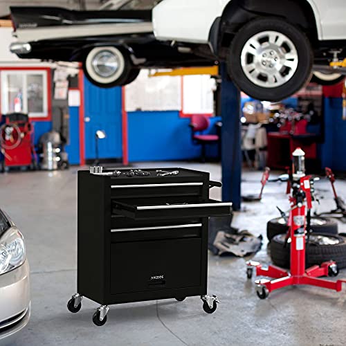 [Perfettamente equipaggiato] Carrello portautensili Aebos con 4 cassetti con 81 pezzi. Attrezzi e un ampio spazio di archiviazione. Realizzato in acciaio massiccio. Piano di lavoro robusto e antigraffio. I cassetti con guide scorrevoli con cuscinetti a sfera e tappetini antiscivolo assicurano che gli attrezzi rimangano al loro posto ed evitino un rumore durante lo spostamento del carrello.
