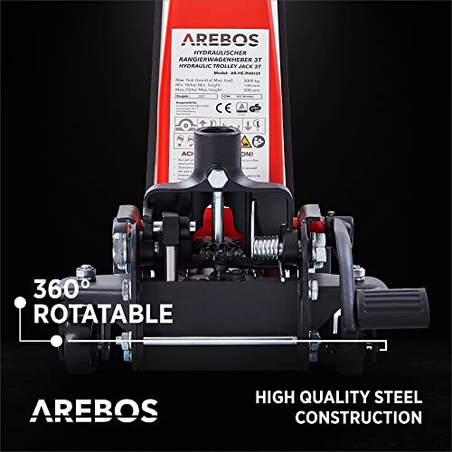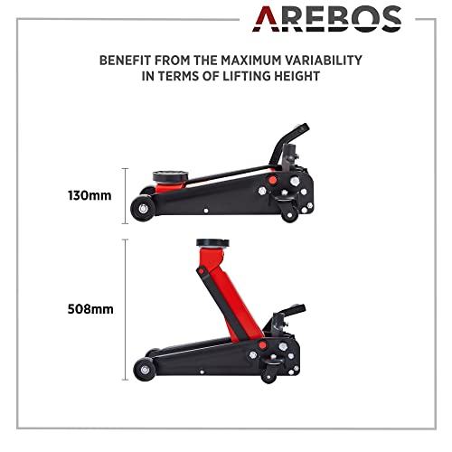 AREBOS Martinetto Idraulico di manovra 3T | Altezza di Sollevamento 130-508 mm | 2 Supporti in Gomma | Martinetto | Cavalletto KFZ Auto PKW
