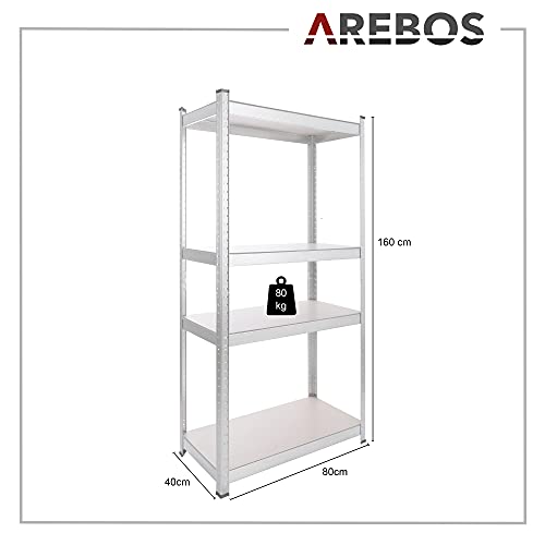 Arebos scaffalatura | 80 x 40 x 160 cm | 320 kg portata | Sistema di facile installazione grazie a bussola