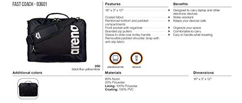 Arena Fast Coach sacchetto di sport unisex adulto, Nero/Yellow Fluo/Argento