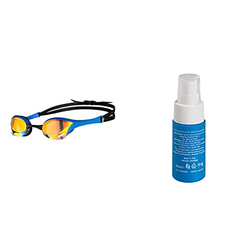 ARENA Cobra Ultra Swipe Mr, occhialini da nuoto giallo rame e blu & Spray Anti Appannamento Istantaneo per Occhialini, Antifog, Antiappannante Occhialini