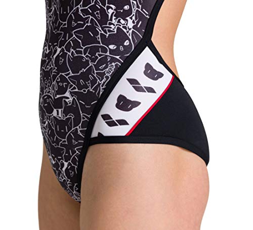 Arena G B/W Kitties Jr Super Fly Back One Piece, Bambina, Black-White, 6-7