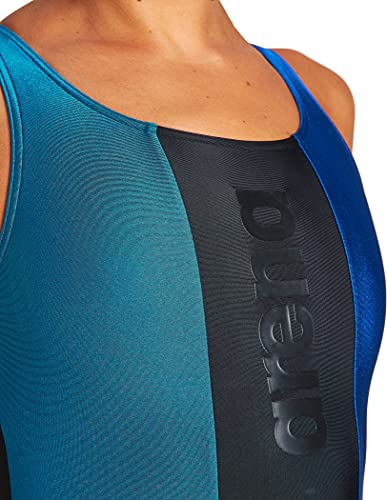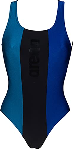ARENA W Just O Back One Piece Costume da, Nero-Galapagos-Neon Blue, 40 Donna