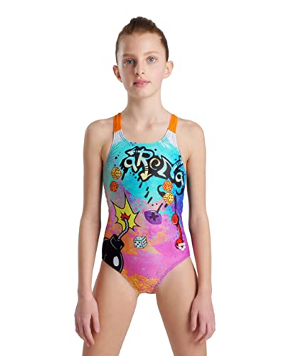 ARENA Girl's Swimsuit V Back Placement, Intero Bambine E Ragazze, Black-mango, 10-11 anni