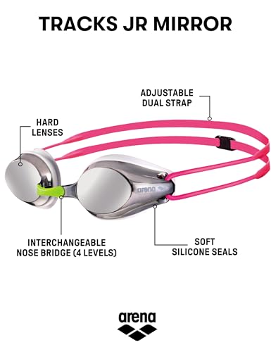 ARENA Tracks Jr Mirror, Occhialini Da Gara Unisex Bambini E Ragazzi, Multicolore (Silver/White/Fuchsia), Taglia unica