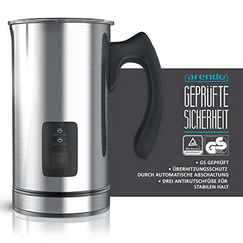 Arendo Schiumalatte Automatico in Acciaio Inox - Milk Frother - Acciaio Inossidabile Doppio Design - 2 Tasti per Schiuma Calda e Fredda
